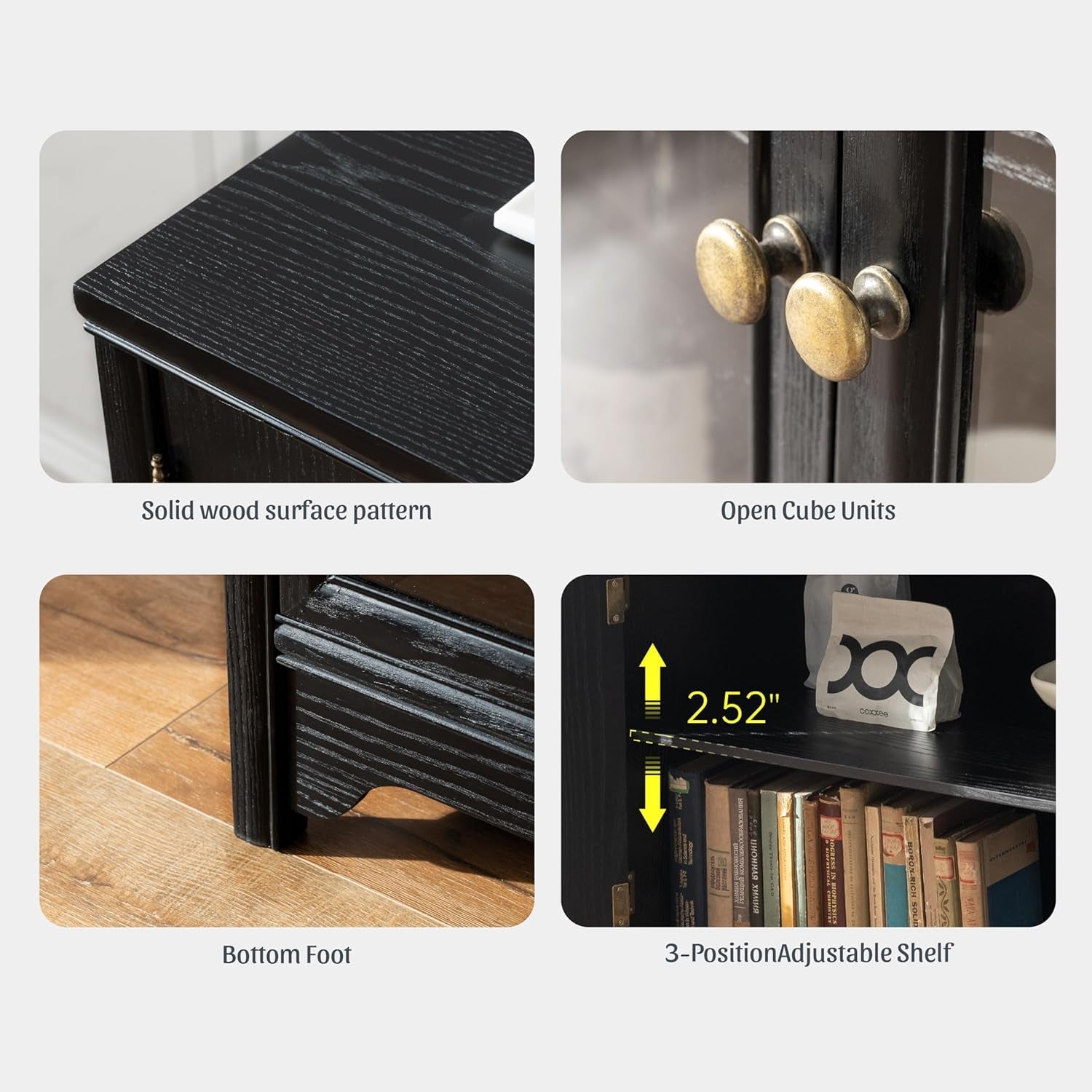 55 Inch Solid Wood Buffet Cabinet Farmhouse Sideboard Black